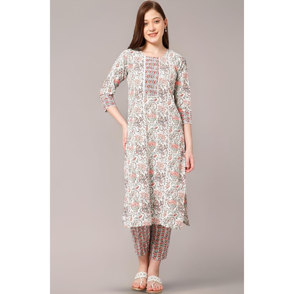 Eight Colors Cotton Floral Straight Kurta Kurti Set for Women